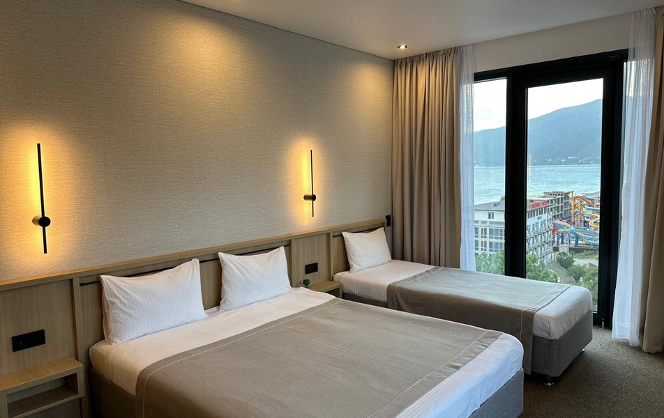 В стоимость путевки входит: проживание в номере выбранной категории, 3-разовое питание шведский стол, пользование открытым подогреваемым бассейном (с 10:00 до 19:00), пользование пляжем и пляжным инвентарем: лежаками, зонтиками (в период 16.06 — 31.10.2024), охраняемая парковка (при наличии свободных мест), пользование настольным теннисом, интернет Wi-Fi на всей территории.
