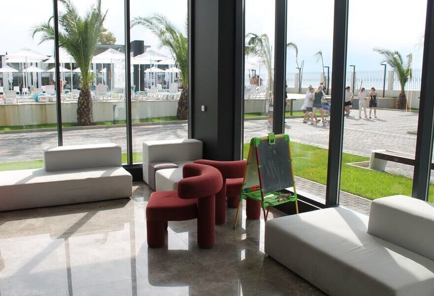 Отель расположен на первой береговой линии в 50 метрах от моря.