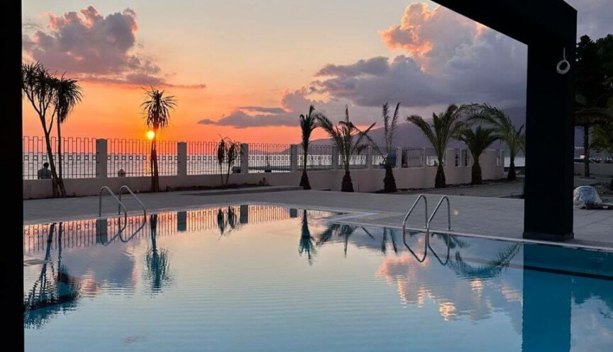 Отель расположен на первой береговой линии в 50 метрах от моря.